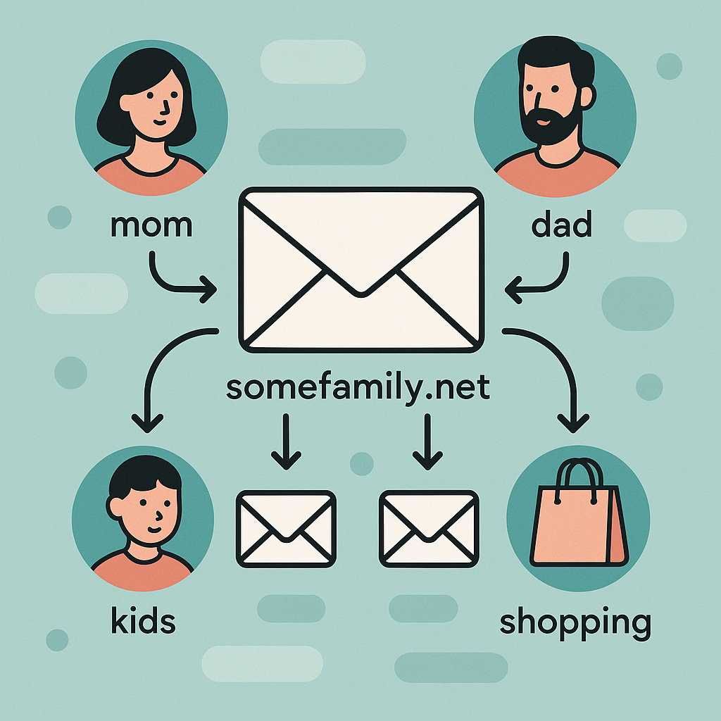 With your family domain (say, boydfamily.net), you can set up rules to automatically send emails from specific addresses—like dad@boydfamily.net or kids@boydfamily.net—straight to wherever you check mail most, such as Gmail, Outlook, or even a shared family inbox.